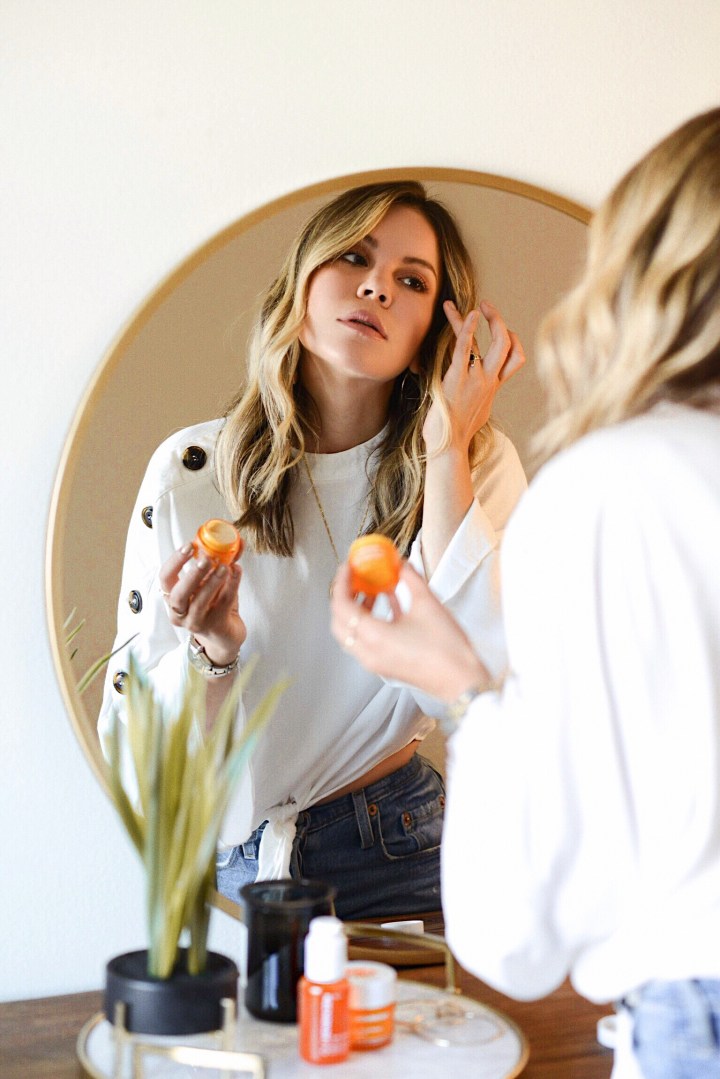 STEP 3: Apply Serum to fight and prevent signs of aging and repair the skin. The “Truth Serum” from OLE HENRIKSEN is like a daily vitamin for my skin. This step is super important in the routine, this product contains vitamin C, has extracts of green tea that act as antioxidants and Aloe for smoother skin.